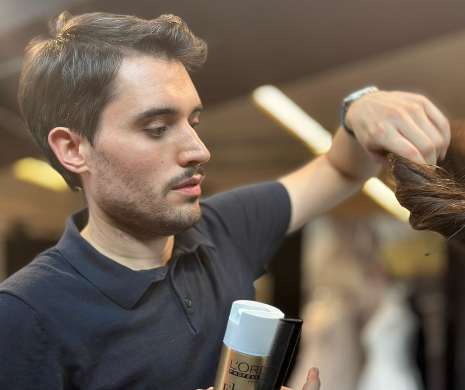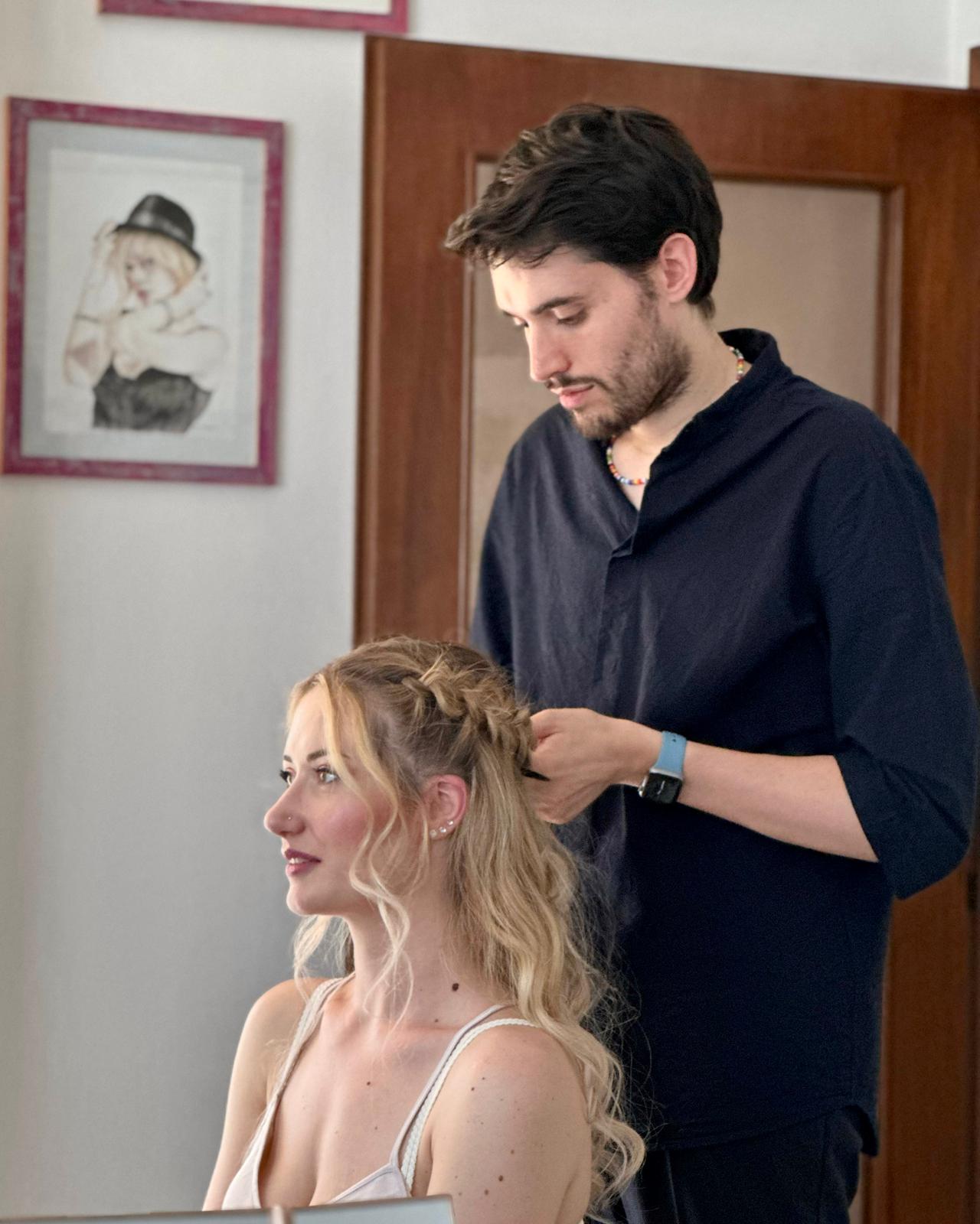 Se a 14 anni avessi intrapreso un percorso professionale, probabilmente non avrei poi avuto la preparazione necessaria per frequentare l’Università. Così mi sono iscritto al Liceo delle Scienze Umane e in seguito a Giurisprudenza. Presto però ho capito che non faceva per me. Avevo bisogno di qualcosa di più artistico. Così ho detto a mia madre, che aveva un suo salone di parrucchiera, che volevo lavorare con lei. Mi ha risposto: ‘Non è vero’. Anche se non avevo nessuna formazione ho iniziato a frequentare il suo salone, lo stesso in cui da bambino mi divertivo a rasare a zero le testine – racconta sorridendo – . Nel frattempo ho seguito un corso serale per parrucchieri e a fine 2019 è arrivata la chiamata per Cannes. Non avevo mai fatto un’acconciatura, ma ho detto ‘sì’. Mia madre mi ha sempre insegnato che non bisogna fermarsi per paura di commettere un errore, perché dallo sbaglio possiamo apprendere moltissimo.