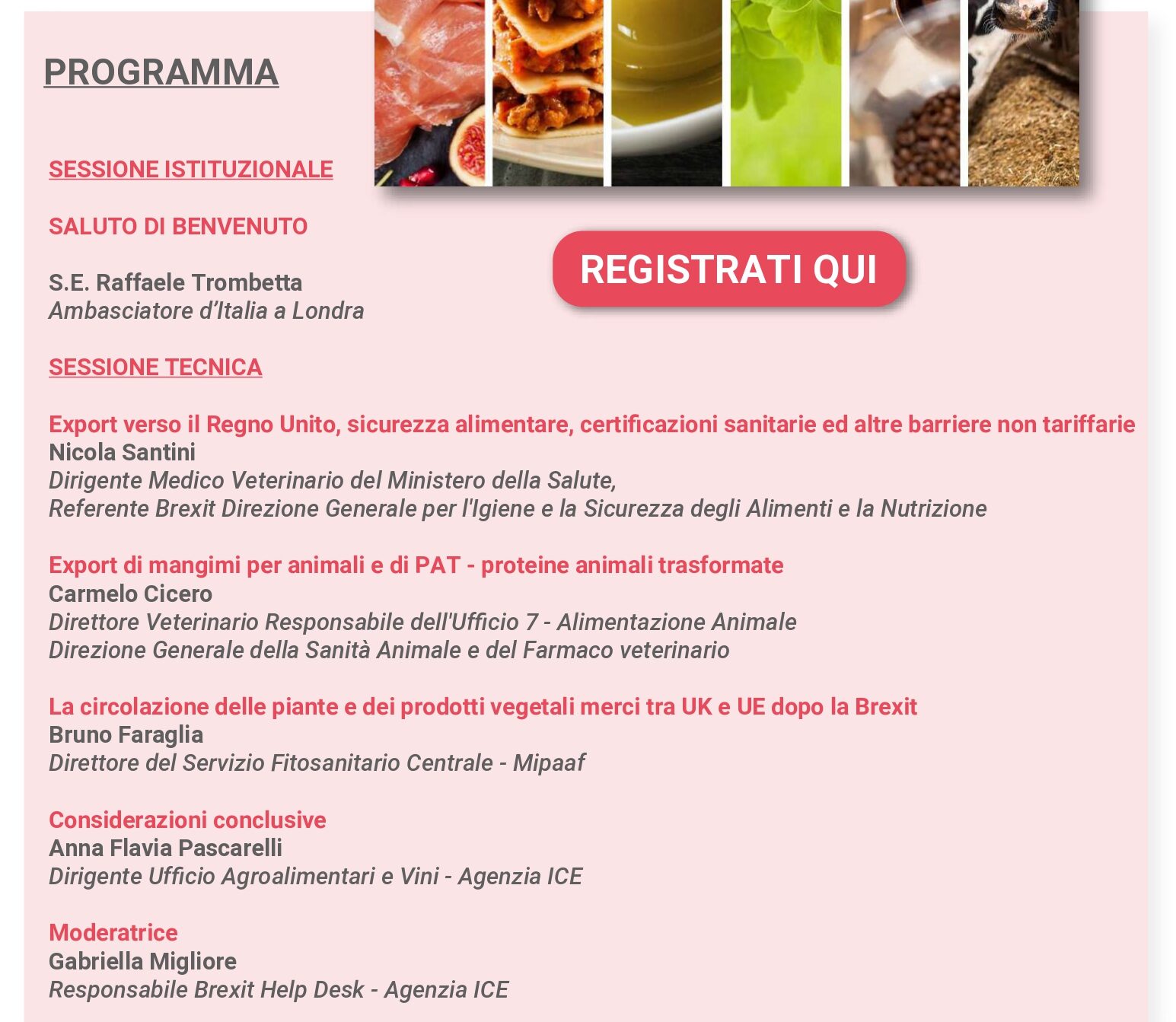Il 16 marzo, alle ore 15.30 si terrà un webinar dal titolo “Certificazioni sanitarie”, organizzato da ICE in collaborazione con Confartigianato, che esaminerà gli adempimenti legati alla sicurezza alimentare, le certificazioni sanitarie e le altre barriere non tariffarie nel Regno Unito, a seguito della Brexit.