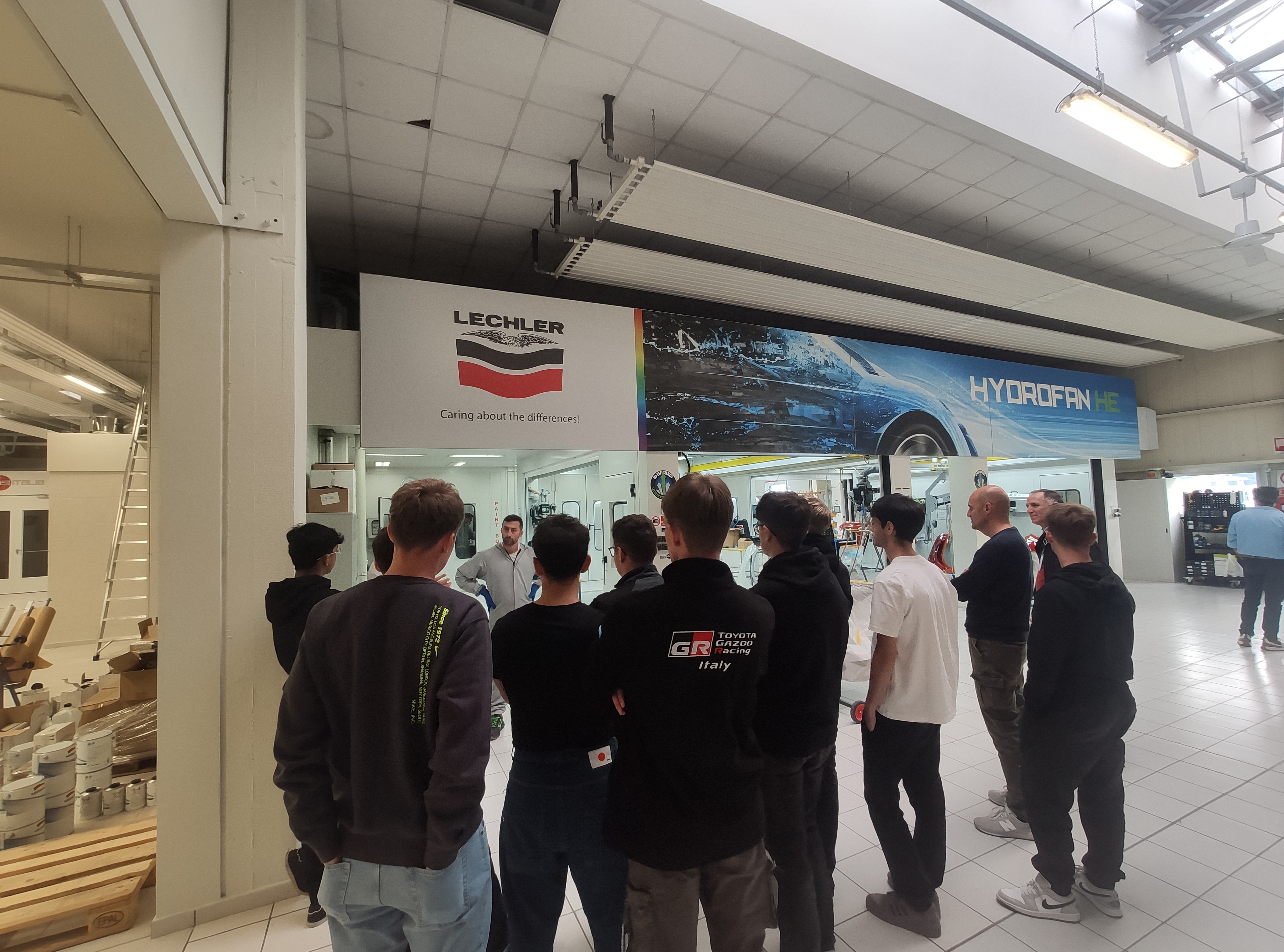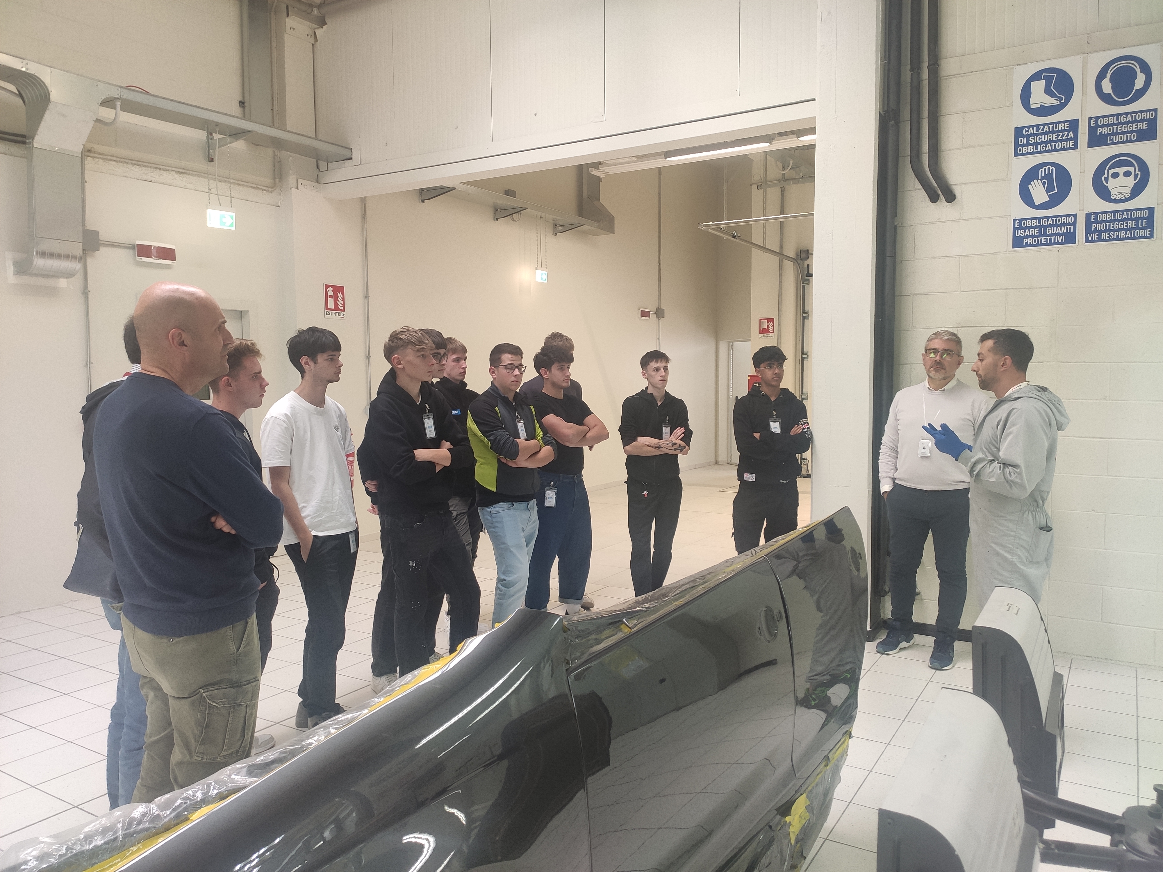 Durante la giornata, gli studenti hanno avuto l’opportunità di visitare lo stabilimento produttivo e l’area espositiva, oltre ad assistere a una dimostrazione pratica di applicazione delle vernici nel centro tecnico. Un’esperienza immersiva che ha permesso di toccare con mano l’innovazione e la qualità che caratterizzano il mondo della carrozzeria.