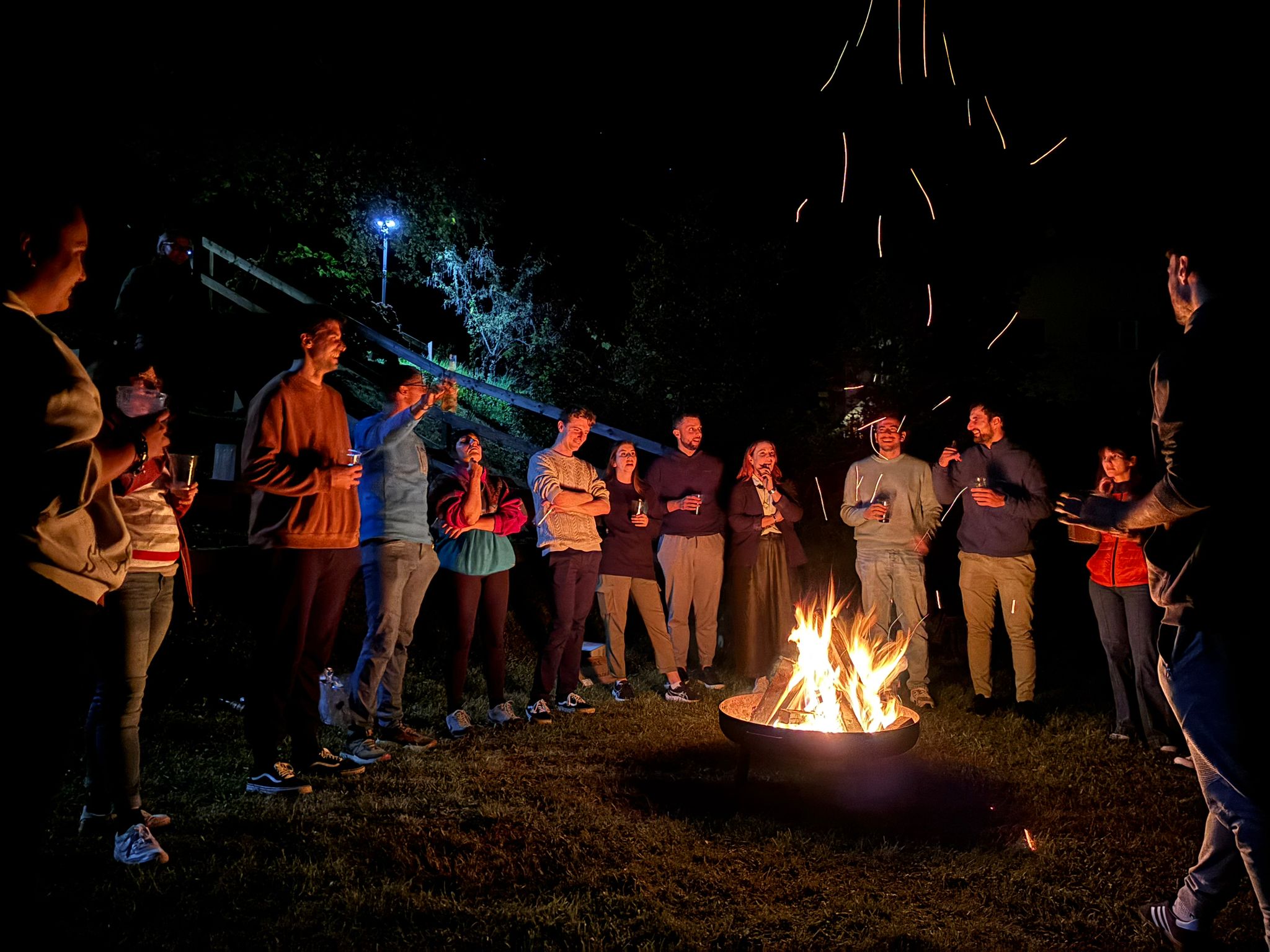 Dopo la cena non sono mancati un po’ di momenti di spensieratezza, prima con degli esercizi di rilassamento e poi con le chiacchiere e le risate attorno al fuoco di un falò.