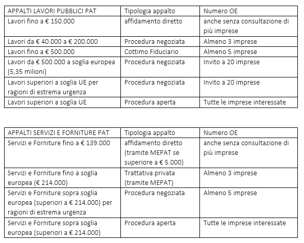 Nella Circolare sono spiegate le novità e deroghe del decreto nazionale e sono in particolare precisate quali sono le conseguenze delle novità introdotte sul nostro territorio provinciale, considerato che non tutte le norme sono immediatamente applicabili nella nostra provincia (per maggiori informazioni leggi la nostra news: Appalti pubblici: novità DL Semplificazioni).