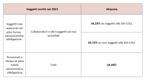 L’Istituto Nazionale della Previdenza Sociale (INPS) ha reso note le aliquote contributive per i versamenti alla Gestione Separata, in vigore dal 1° gennaio 2021.