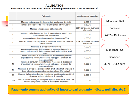 - l’assenza del P.O.S. obbligatorio per le attività di cantiere;