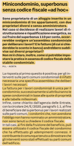 Minicondominio, superbonus senza codice fiscale «ad hoc»