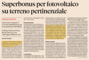 Superbonus del 110% anche per l’installazione dell’impianto fotovoltaico sul terreno di pertinenza dell’unità abitativa oggetto di interventi di riqualificazione energetica.