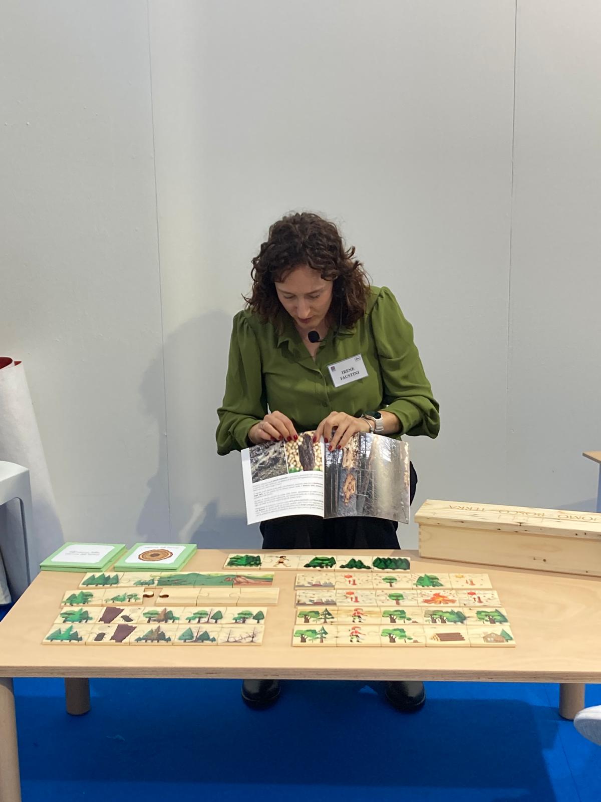 Legno, marmo, vetro, metalli sono tutti materiali adatti perché hanno un valore sensoriale. Hanno un certo peso e  trasmettono delle sensazioni come il caldo o il freddo. Mentre la plastica, ad esempio, non va assolutamente bene, perché è troppo leggera e asettica. Noi utilizziamo prevalentemente legno di faggio che lavoriamo con il taglio laser o con la fresatrice a controllo numerico, rifinendo poi tutto a mano. Duro, compatto ed esteticamente bello. Recentemente abbiamo realizzato anche uno strumento in abete bostricato. Si chiama “Uomo-Bosco-Terra” ed è composto da strisce raffiguranti immagini “causa-effetto” che, seguendo la raccomandazione di adattare i materiali al proprio tempo storico, ho disegnato personalmente per raccontare la tempesta Vaia e le conseguenze che ne sono derivate.