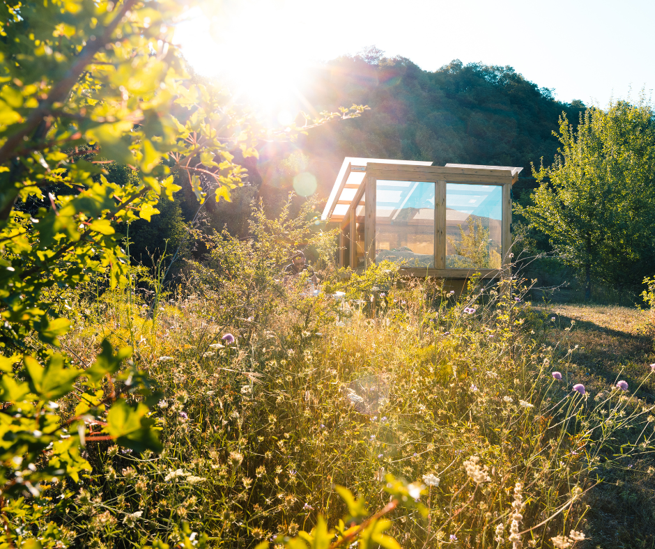 Dormire sotto il cielo stellato. Immersi nella natura, ma con tutti i comfort di una tiny room. Una piccola stanza, intima e curata, con pareti e soffitto in vetro.