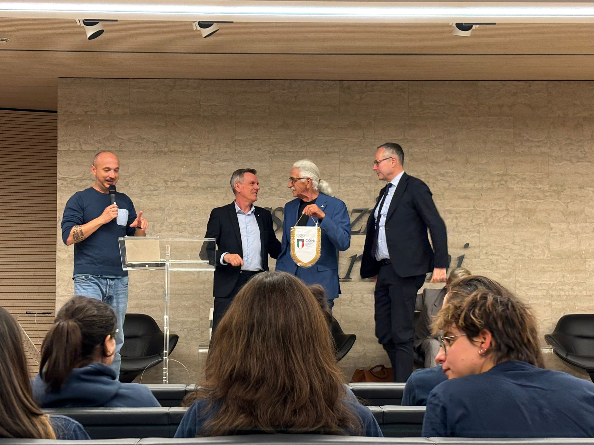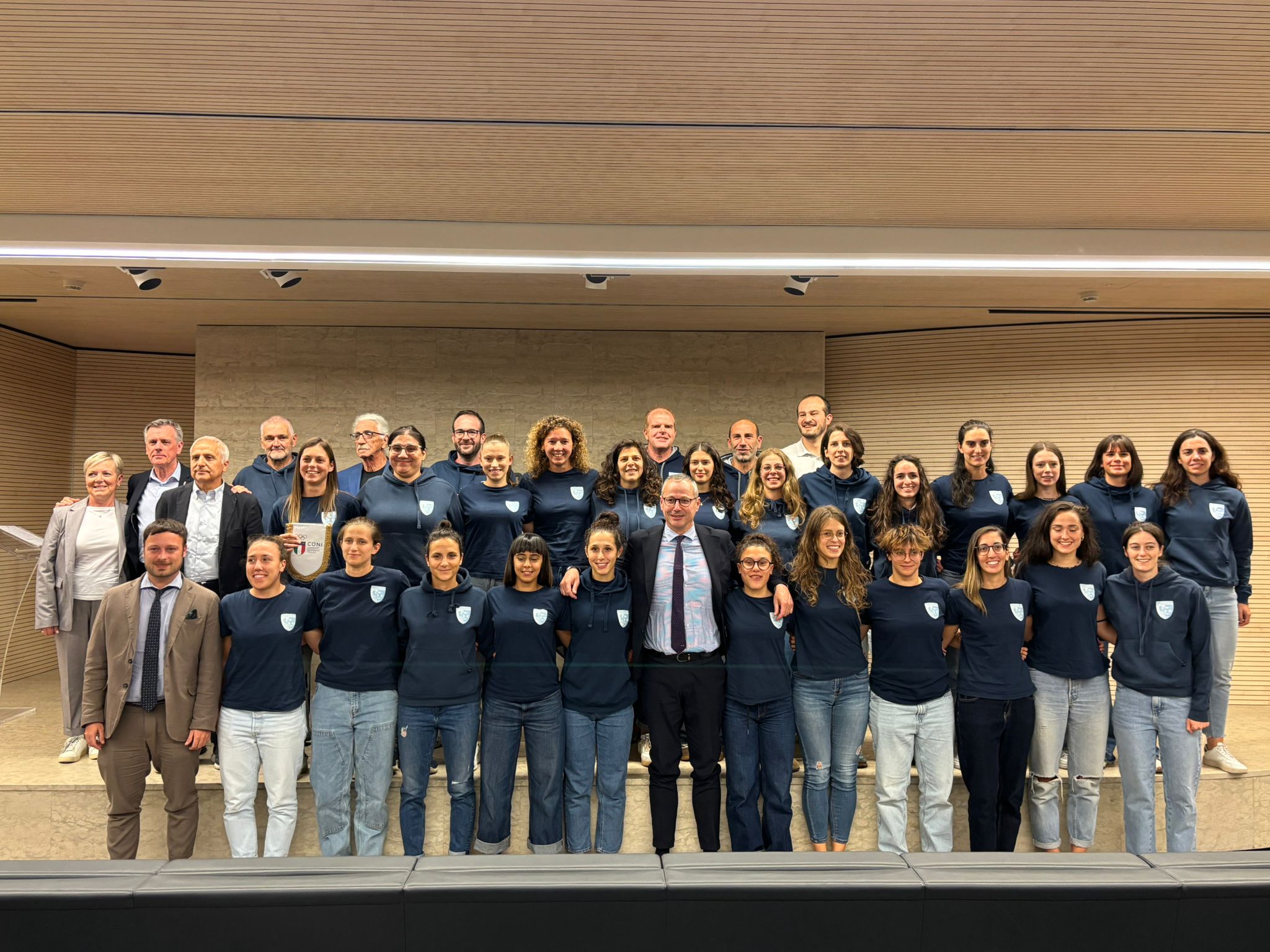 Infine, Massimo Eccel, vice presidente vicario del CONI ha espresso parole di incoraggiamento nei confronti delle giocatrici e consegnato il gagliardetto al presidente Giorgio Piffer.